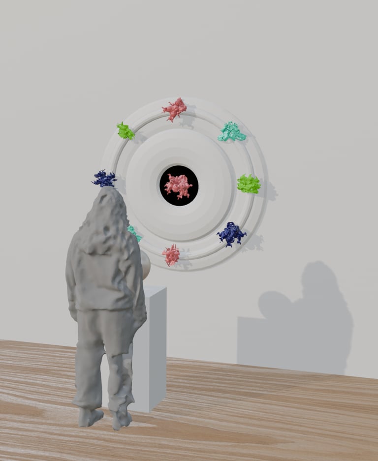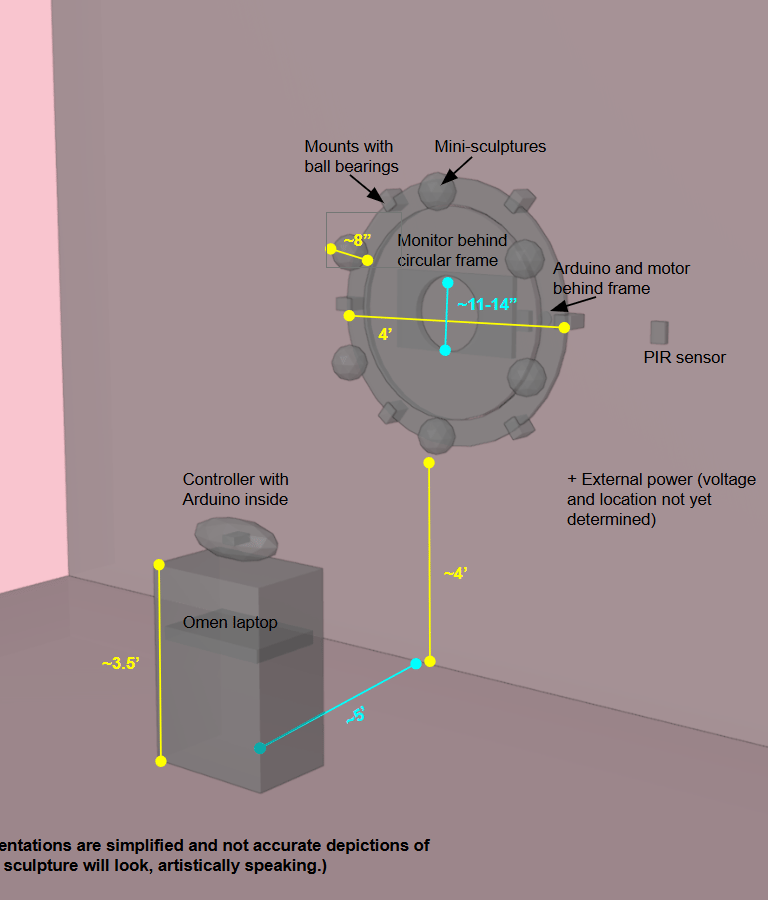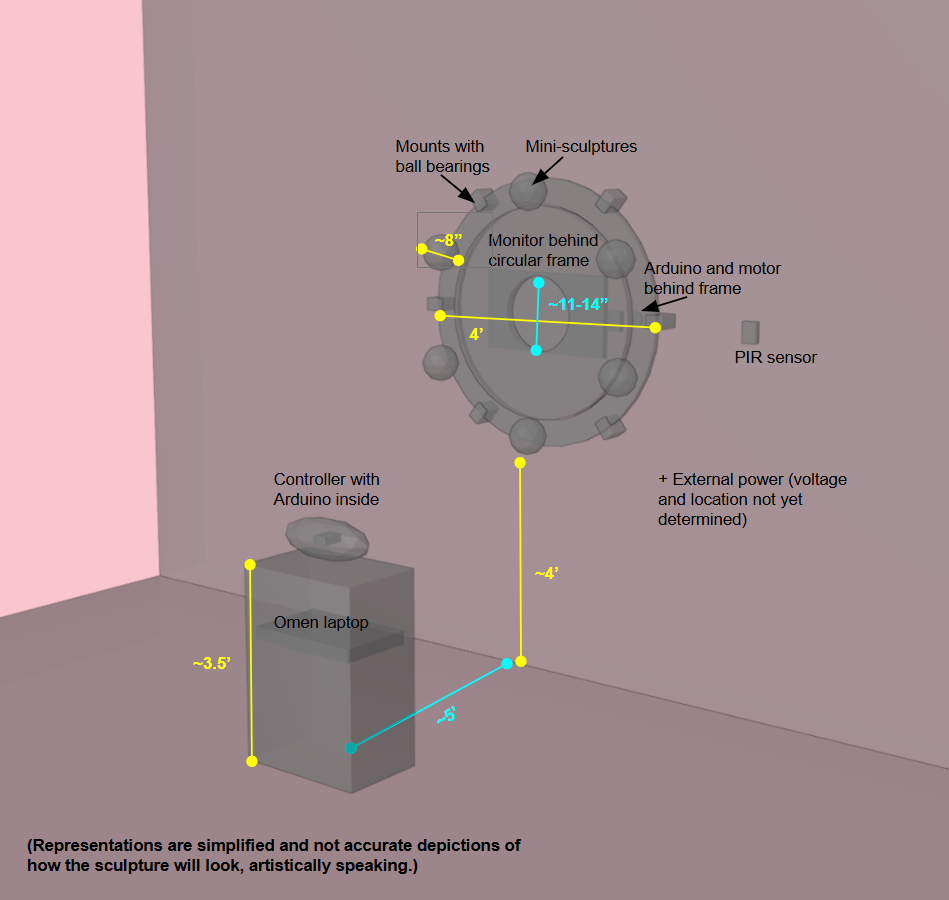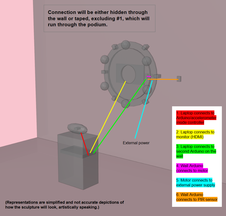 This project will be an installation artwork, set to be on display in May 2026. Audience members will move a controller to impact imagery on the monitor. Infrared data will be collected to control the speed at which the wheel spins.