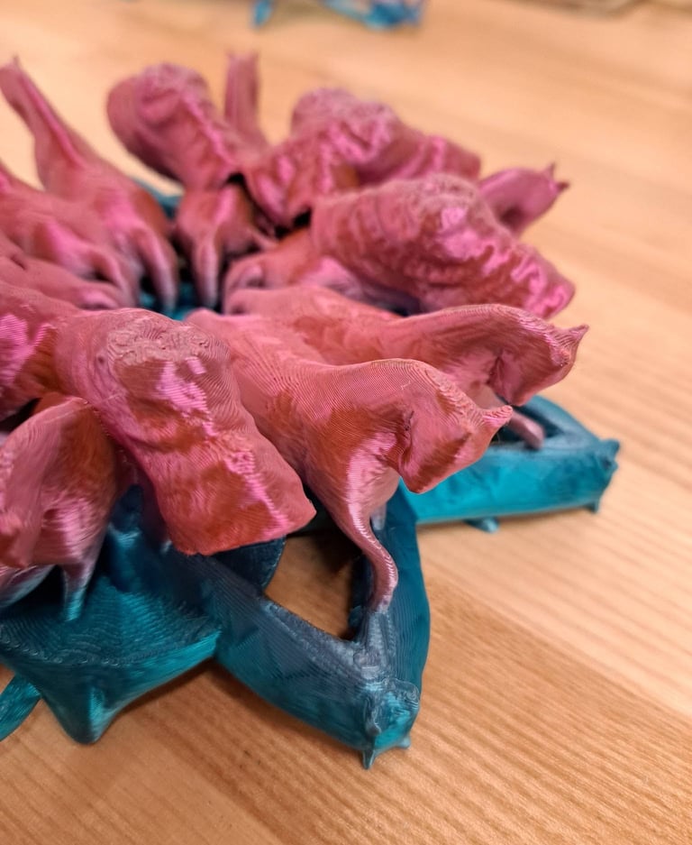 The objects are designed using 3D scans which are manipulated and then 3D printed
