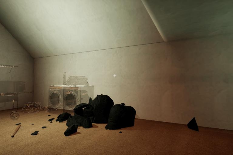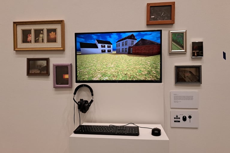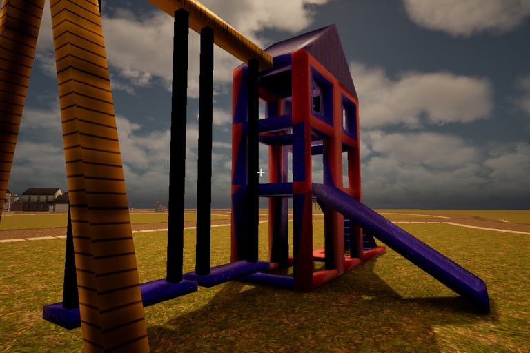 This project vast virtual environment made of seven houses, a library, a church, a playground, a set of electrical boxes, and many, many cars. Each house represents a unique reasoning or element of this lonely suburban atmosphere: The evolution of play from communal to solo, family meals as a construct as opposed to a reality, excessive car ownership and dependency, the fragility of change against the stubbornness of routine, the toxicity of easy consumption mixed with remote work, the comfort found in stagnation, and the physical illusion of mentally exiting a space.